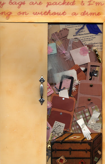 I had a full time day job, and on weekends, I worked in an antique shop. So this closet is filled with junk! But it's also filled with photos of my sisters, notes about their lives, and you can see little notes tucked inside of purses...and little scrapbooks that I have recreated....holding secrets from my past.
