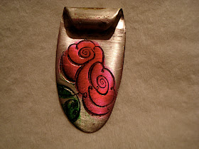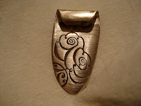 Not even my jewelry is safe! LOL! This piece was made with Art Clay Silver and my Lucy McGoo stamps. Now I need to go buy something new to wear this with!!!