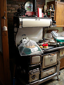 And just look at her stove. Is this gorgoues? It looks like an antique wood burning cook stove, but it's brand new, with electric burners on top! So cool!