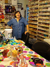 I should have known right then and there to beware!!! Inside, Judi, the owner, had a party table all set out! What an incredible surprise!!!