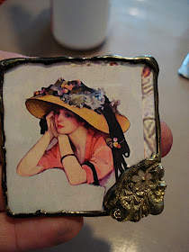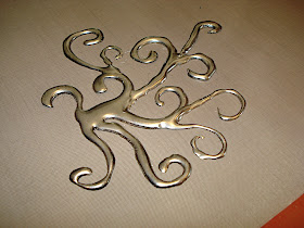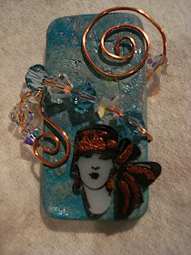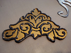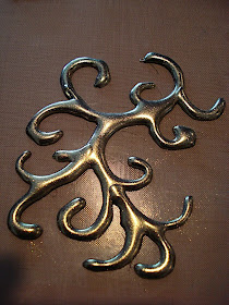Here's her faux soldering piece - black hot glue with pearl mica powder over it.