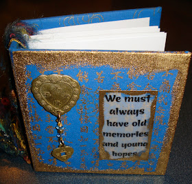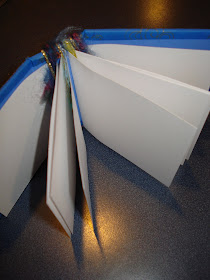 We were taught the basics of book making. We started with paper, chipboard, and I used my ATG gun. She showd us how to wrap fibers to create the binding for signatures. The thing I like about this journal is that you can use a few pages (and make them quite lumpy) or add as many pages as you want. And it was just soooooo simple to make!
